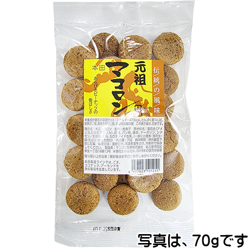| 原材料 | 落花生(アメリカ又はアフリカ)、砂糖、パン粉、鶏卵、マーガリン、シナモン/膨張剤、香料、カロチノイド色素(原材料の一部に小麦粉・落花生・卵・乳成分・大豆を含む) |